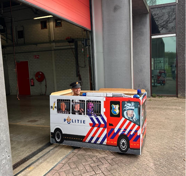Op zaterdag 11 april jl. is oud-prins D’n Urste Hooijen toegetreden tot De Broederschap! De organiserende commissie had een uitgebalanceerd programma in elkaar gezet met een huiswerk-opdracht voor Pieter: “Maak een politie/brandweerwagen met de 7 commissieleden”. Die opdracht voerde hij meer dan goed uit; de 1e klap was meteen raak en hij scoorde daarmee veel punten! Om 13.00 uur was het een groot samenzijn rondom De Steek, is er een groepsfoto gemaakt en werd er met een Schrobbelèr geproost op het leven en even stil gestaan de overledenen. Daarna moest Pieter, in brandweerkostuum, brandslangen op- en uitrollend van De Steek naar BRUIS verplaatsen. Op de Markt aangekomen moest hij onder toeziend oog, vanaf het panorama-balkon, door De Broederschap pakketjes onschadelijk maken. Dit alles lukte net op tijd. Met zijn brandweer/politie-skelter werd de tocht voortgezet richting de brandweerkazerne. Daar kregen we interessante uitleg over het functioneren van de hulpverleners, konden we in een hoogwerker, politiewagen en ME-bus. ’s Avonds stond er een Schnitzeltruck klaar. Na het lekkere eten volgde een fotopresentatie met een precaire situatie vanuit het verleden rondom CV De Muggezifters en een 2e carnavalsclubke “Dè Wend nie”, waar Pieter destijds (en nu nog…?) lid van was/is. Dit moest Pieter (of was het zijn tweelingbroer Paul?) uitleggen! Na veel vijven en zessen is hem dat toch gelukt, ontving ie het felbegeerde blauwe hesje, medaille en mini-steek en hebben we er weer een respectabele Broeder bij: welkom Pieter!
